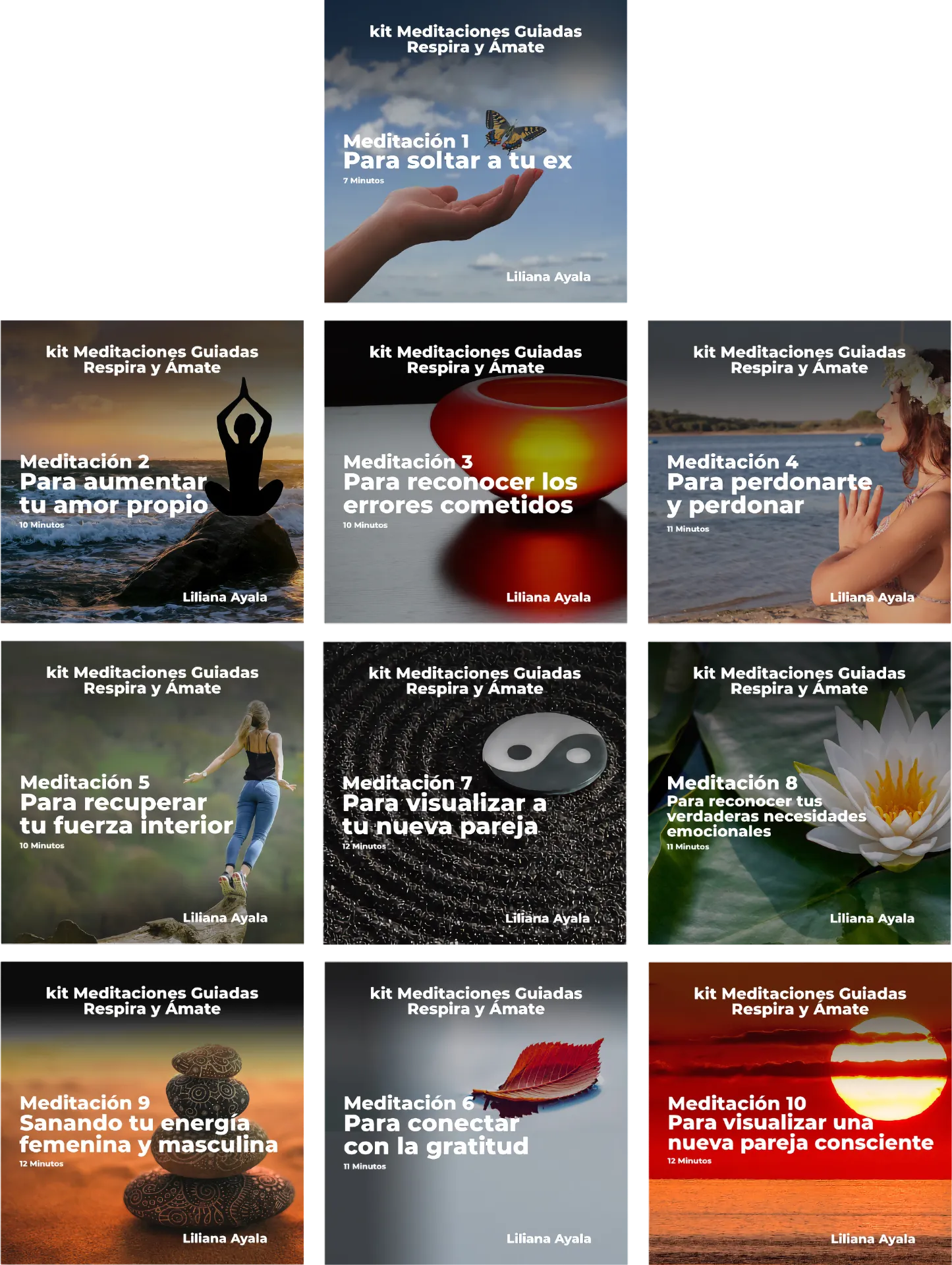 RESPIRA Y ÁMATE es un kit de 10 meditaciones guiadas con mi voz, creadas para ayudarte a regular tus emociones, soltar lo que duele y volver a sentir calma interior, incluso en medio de una etapa difícil.
